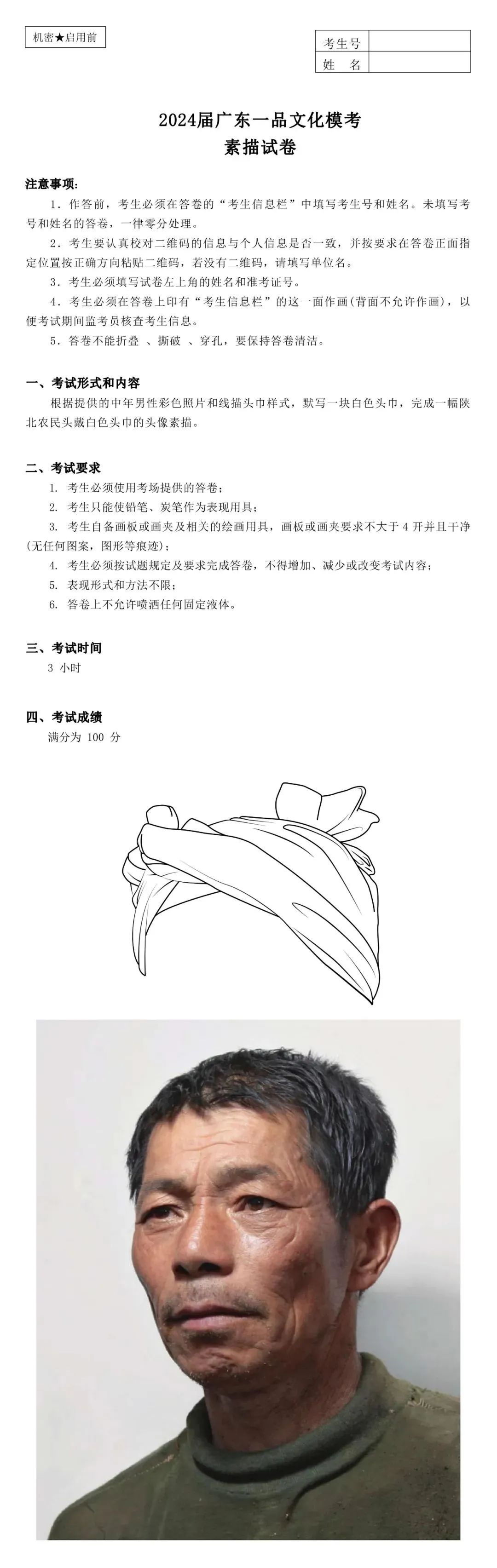 2024屆廣東一品二模【素描】高分卷!一起圍觀學習啦