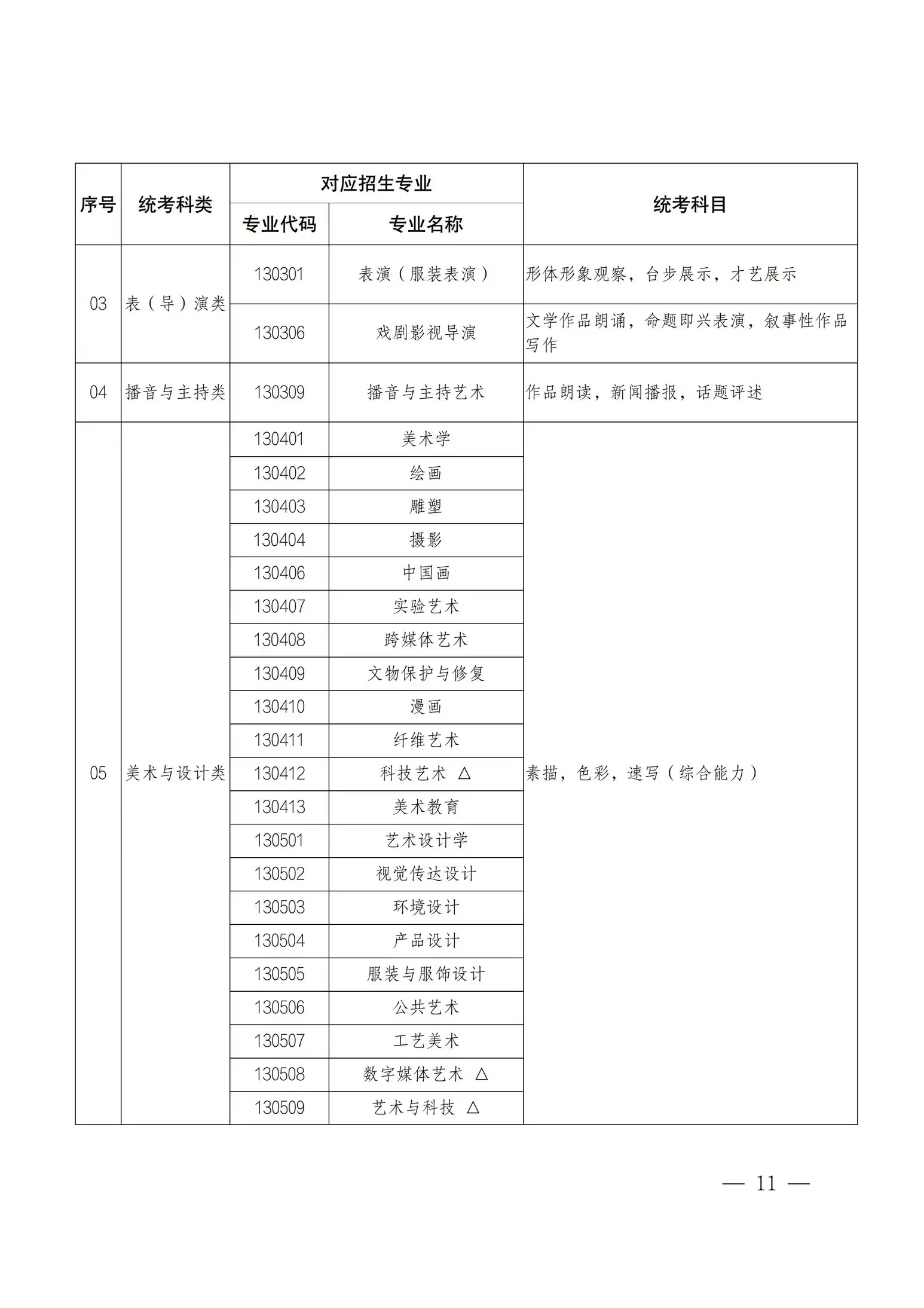 本方案考試和招生錄取辦法僅適用于組織專業(yè)能力考試的藝術(shù)類專業(yè)。