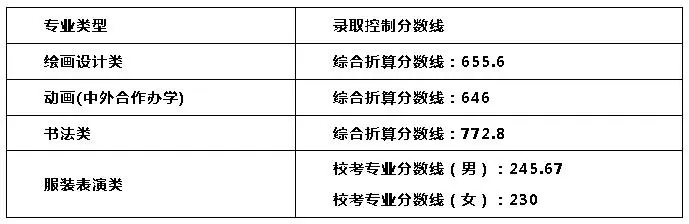 1.繪畫設(shè)計(jì)類、動(dòng)畫(中外合作辦學(xué))綜合折算方式:(高考文化成績(jī)×0.4+校考專業(yè)成績(jī)×0.6)×2