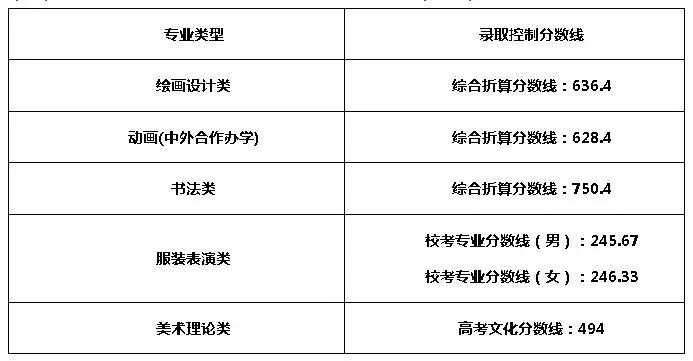 湖北美術(shù)學(xué)院2020年普通本科招生湖北省錄取控制分?jǐn)?shù)線如下: