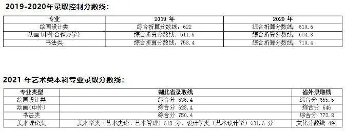 2021年湖北美術(shù)學(xué)院各專業(yè)錄取分?jǐn)?shù)線
