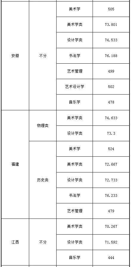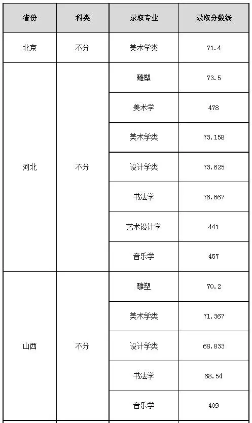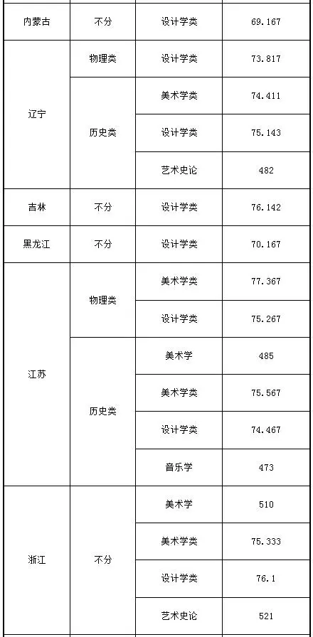 注:1.按遼寧省、河南省、湖南省的錄取規(guī)則,美術(shù)學(xué)類、設(shè)計(jì)學(xué)類、雕塑、書法專業(yè)的綜合分計(jì)算方法為:綜合分=文化總分×0.067+省統(tǒng)考總分×0.167。